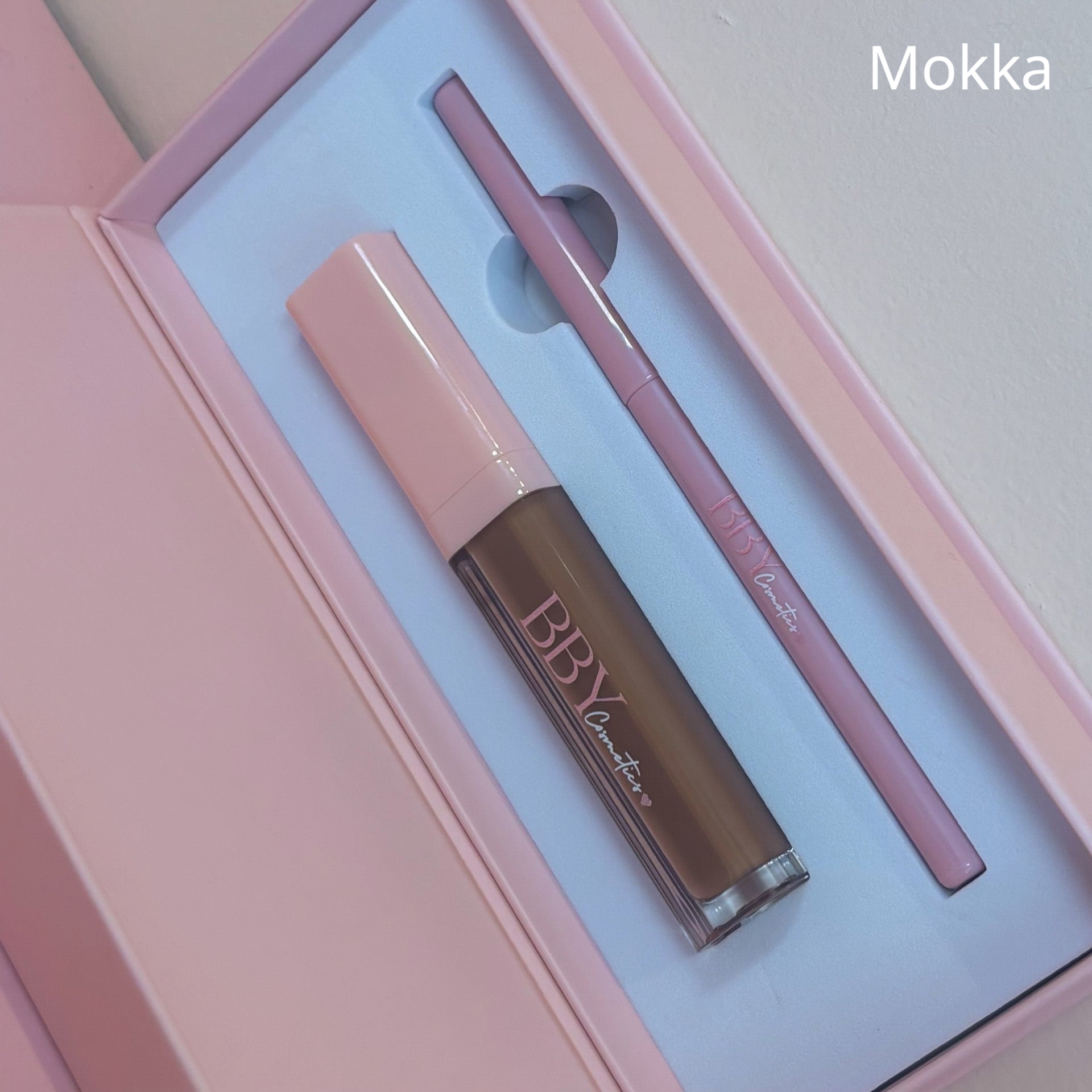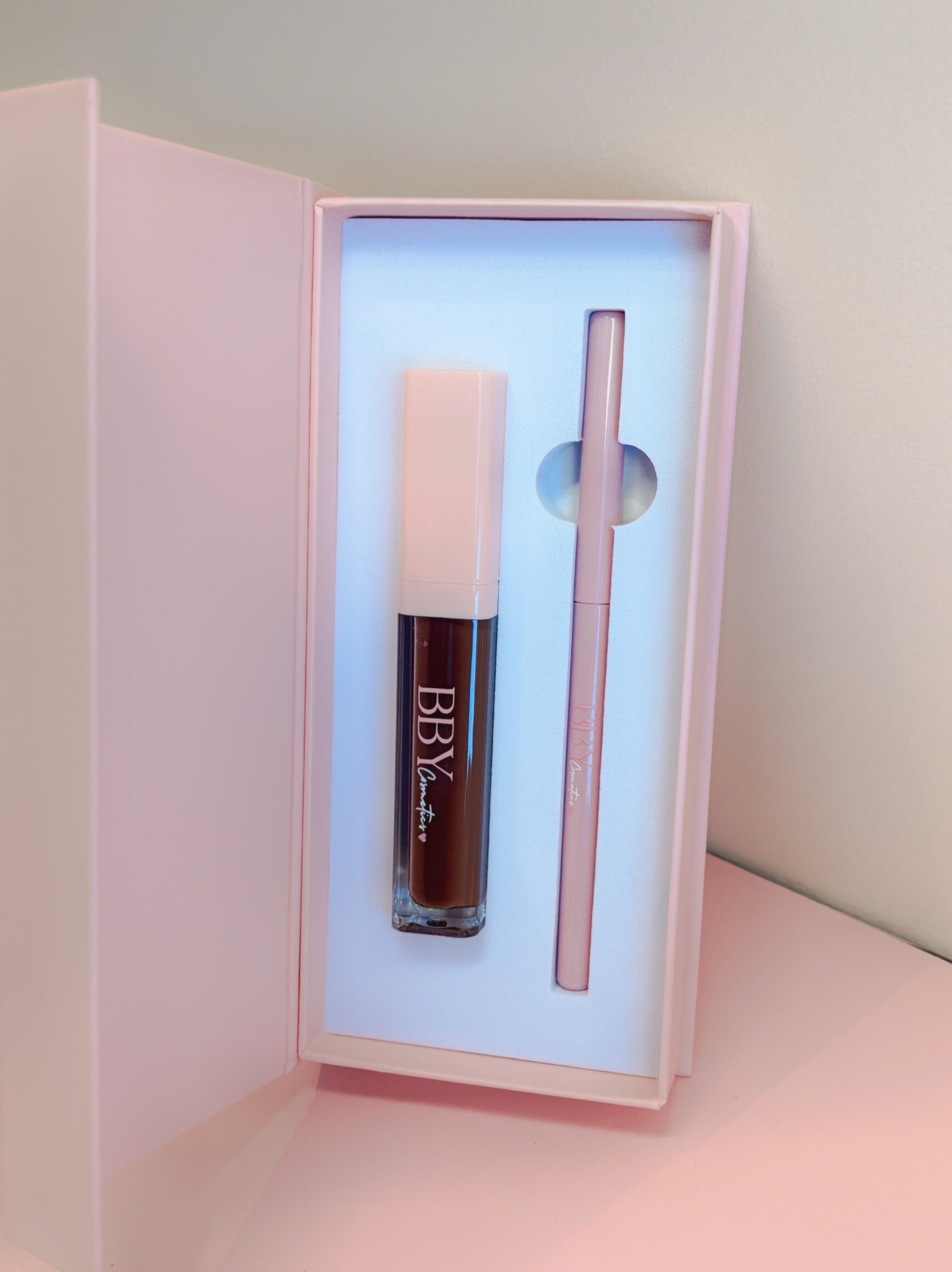 Een matte lippenstift met bijhorende lipliner, verpakt in een mooi magnetisch bewaardoosje.